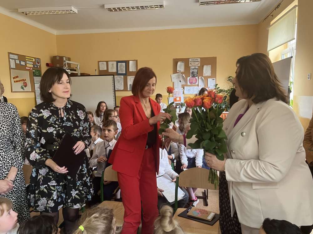 W uroczystości wzięły udział Wójt Gminy Kutno Justyna Jasińska, Pani Agnieszka Badziak starszy wizytator Kuratorium Oświaty w Łodzi Delegatura w Kutnie , które złożyły życzenia Dyrektor Beacie Cieślak, nauczycielom i pozostałym pracownikom szkoły.