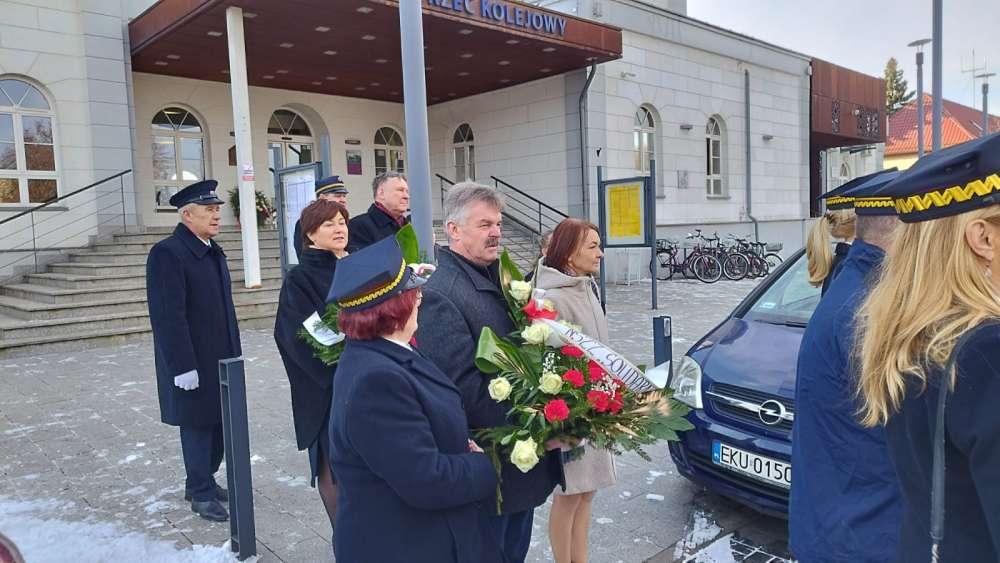 Następnie uczestnicy uroczystości udali się przed dworzec kolejowy w Kutnie gdzie złożyli kwiaty pod pomnikiem Kolejarzy Poległych w Walce o Wyzwolenie Społeczne i Narodowe w latach 1939-1945. Gminę Kutno reprezentowali Wójt Gminy Kutno Justyna Jasińska i Sekretarz Gminy Jacek Saramonowicz.