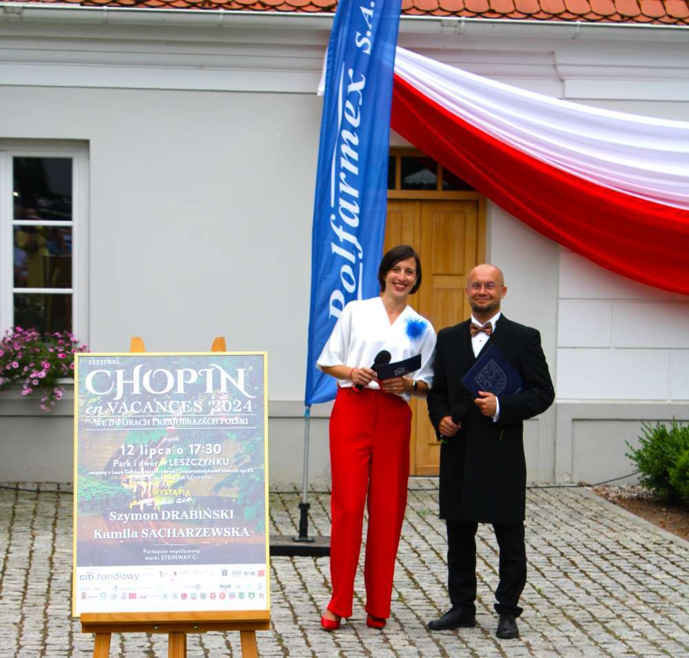 W piątek 12 lipca odbył się wyjątkowy koncert Chopin en Vacances. Przy fortepianie zasiedli Kamila Sacharzewska i Szymon Drabiński. Piątkowe wydarzenie wzbogaciło czytanie poezji J.B.Zaleskiego zainspirowanego Fryderykiem Chopinem. Przed zgromadzonymi gośćmi wiersze zaprezentowali Piotr Czerbniak - Dyrektor Gminna Biblioteka Publiczna im. Józefa Bohdana Zaleskiego w Leszczynku, Katarzyna Krzewicka oraz Magdalena Walczak.