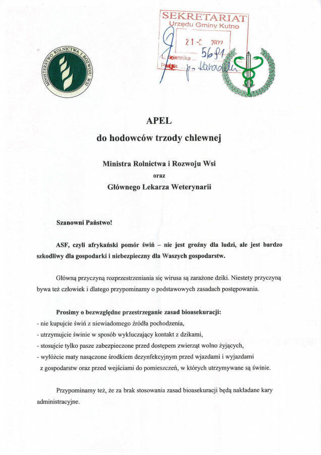 Apel dot. ASF