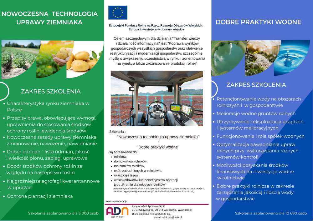Informujemy, że Agencja Restrukturyzacji i Modernizacji Rolnictwa realizuje program szkoleń dla zainteresowanych rolników w zakresie najnowszych rozwiązań w sektorze rolnym: