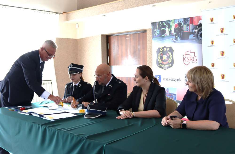 20 sierpnia w świetlicy OSP w Leszczynku, Joanna Skrzydlewska - Marszałek Województwa Łódzkiego oraz Małgorzata Grabarczyk - Przewodnicząca Sejmiku Województwa Łódzkiego, w asyście zastępcy dyrektora Departamentu Bezpieczeństwa i Kontroli Pana Ryszarda Wiśniewskiego podpisały ze strażakami z trzech powiatów umowy na dofinansowanie wyposażenia osobistego ochotników. W naszej gminie granty w wysokości 20 tys. zł przypadły druhom z Leszczynka i Wierzbia.