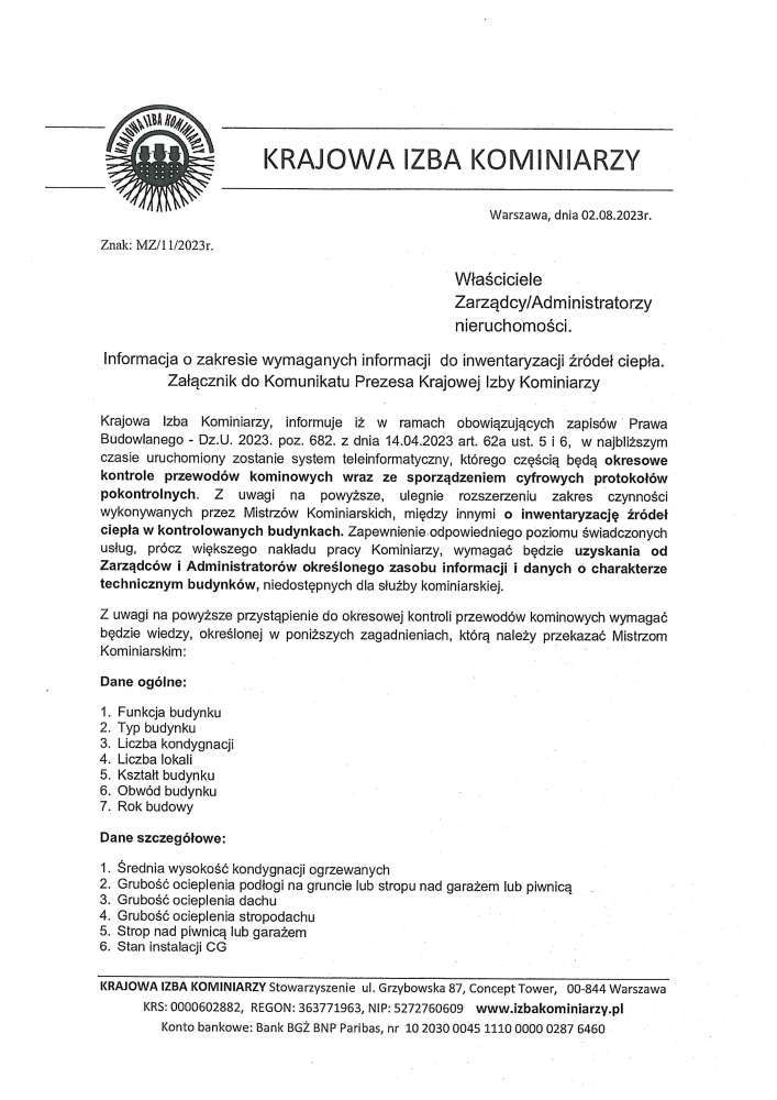 Poniżej treść komunikatu Mędzywojewódzkiego Cechu Kominiarzy dot. kampanii społecznej "Sadza płonie. Czad zabija. Żyj!"