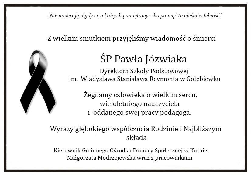 Kondolencje od Kierownika Gminnego Ośrodka Pomocy Społecznej Małgorzaty Modrzejewskiej i pracowników.