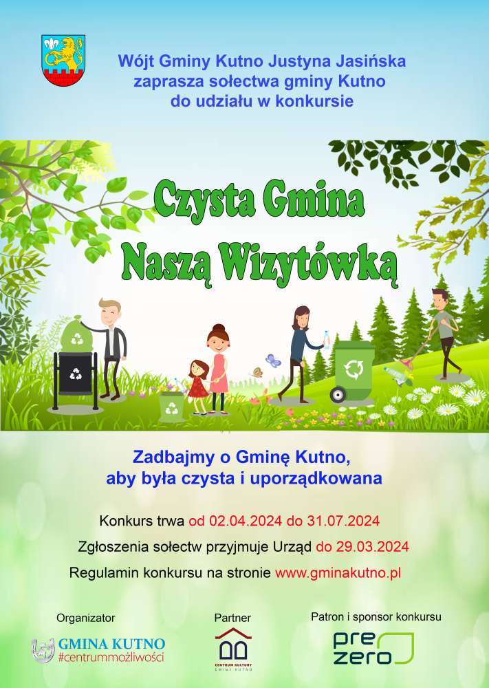 Zgłoszenia są przyjmowane do 29.03.2024, a konkurs trwa od 02.04.2024 do 31.07.2024. Zadbajmy o Gminę Kutno, aby była czysta i uporządkowana.