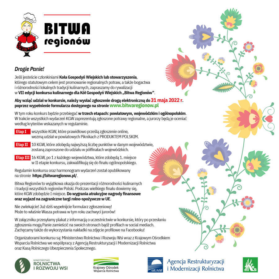 Zapraszamy Koła Gospodyń Wiejskich do udziału w konkursie kulinarnym "Bitwa Regionów".