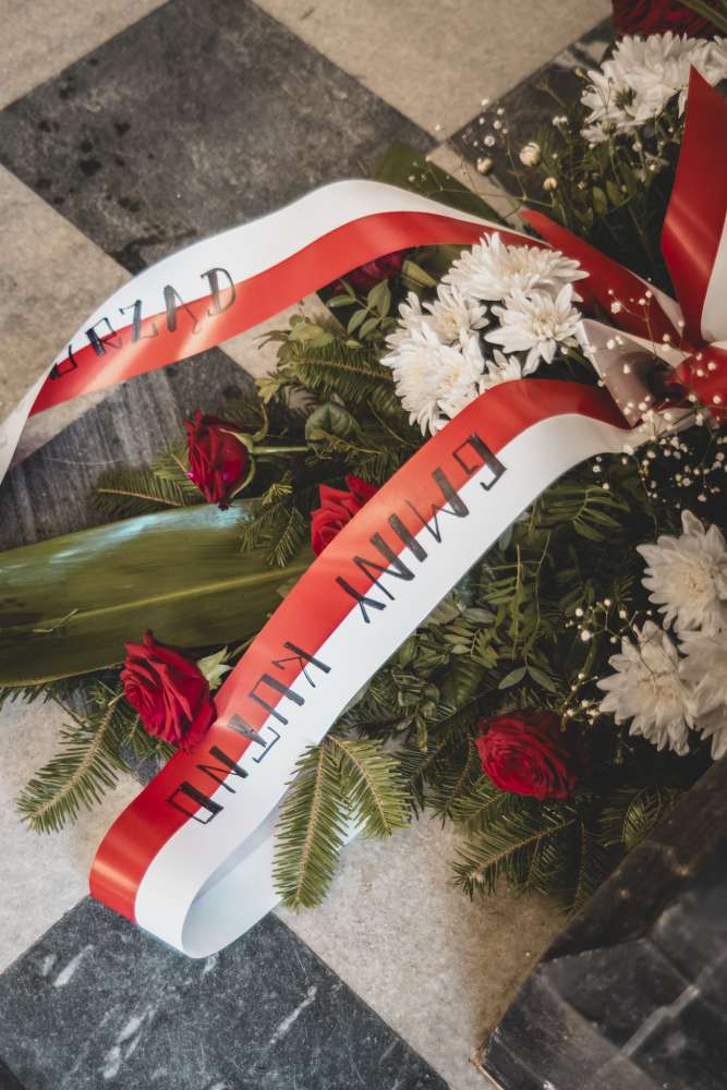 Następnie Wójt Gminy Kutno Justyna Jasińska złożyła pod tablicą symboliczna wiązankę kwiatów w imieniu Samorządu Gminy Kutno.