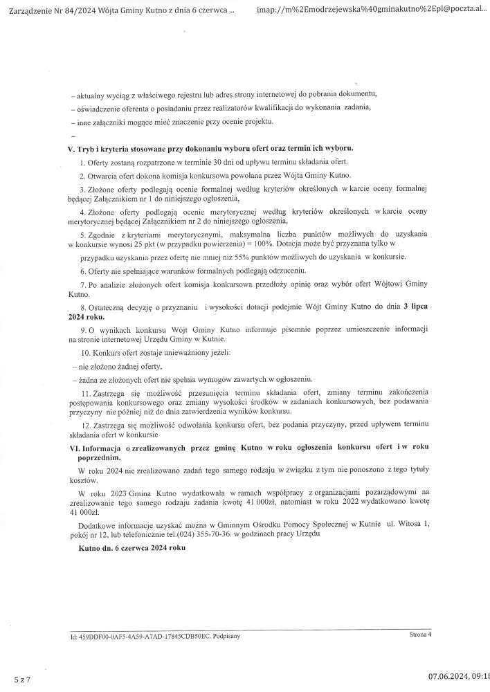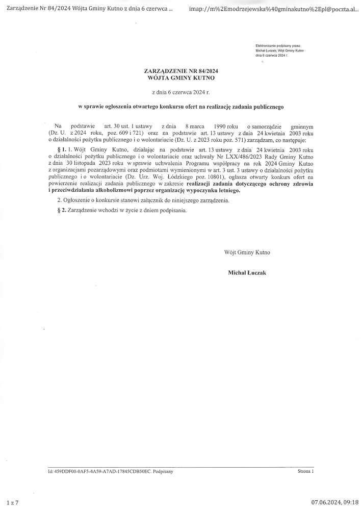 Poniżej treść zarządzenia Wójta Gminy Kutno dot. ogłoszenia otwartego konkursu ofert na realizację zadania publicznego