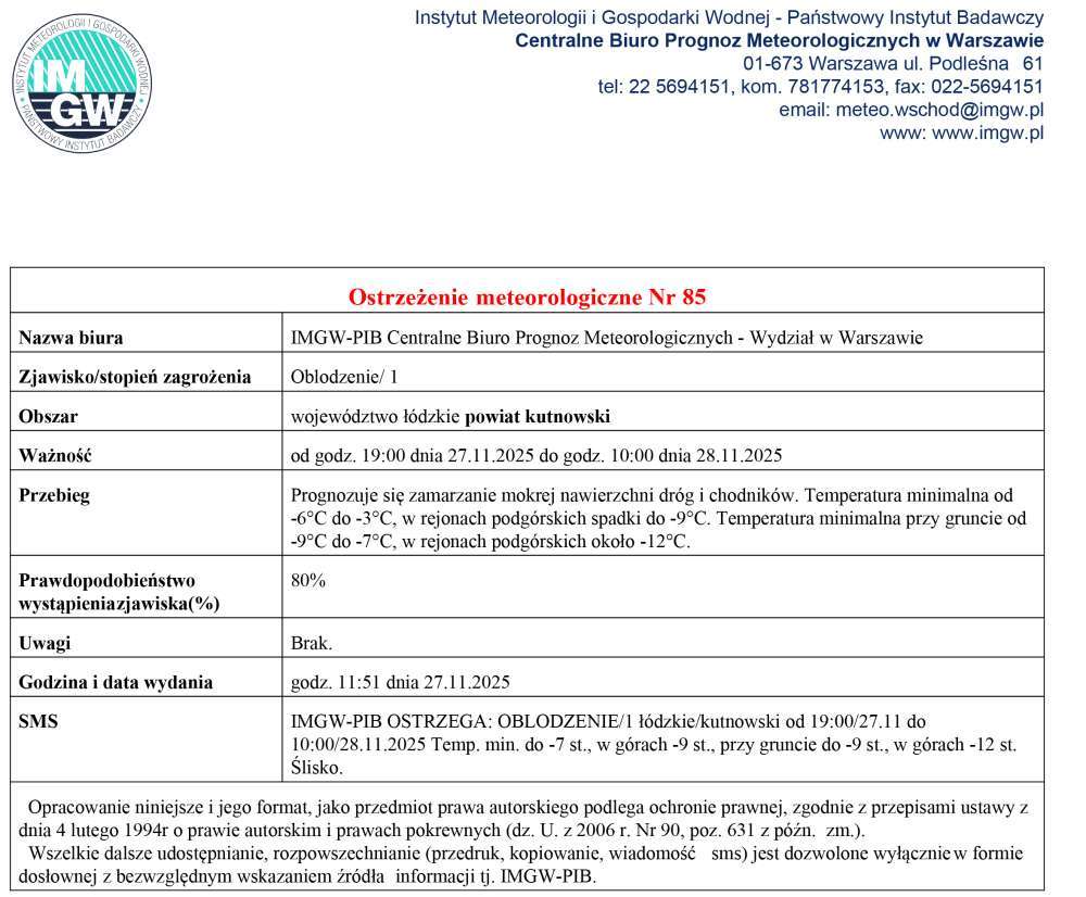Ostrzegamy przed oblodzeniem