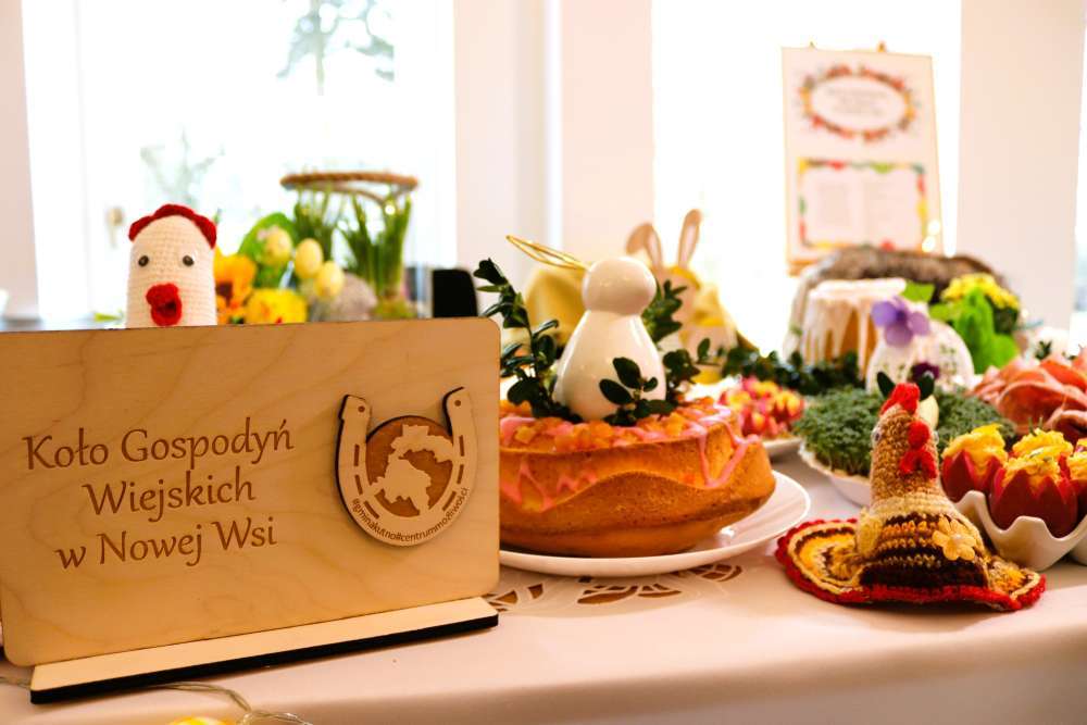 Panie z Koła Gospodyń Wiejskich w Nowej Wsi zaprezentowały na swoim stole biały barszcz, kiełbasę zapiekaną w sosie śmietanowo-chrzanowym, jajka faszerowane, wędliny, szynkę zawijaną z farszem, pasztet, sałatkę z tuńczykiem oraz mnóstwo słodkości: babeczki, mazurka, babkę ucieraną, sernik i babkę gotowaną.