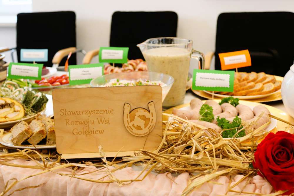 Stowarzyszenie Rozwoju Wsi Gołębiew przygotowało: jaja faszerowane, roladę szpinakową z łososiem, roladę drobiową z pieczarkami, babkę drożdżową, roladki faszerowane mascarpone z chrzanem, tartę wielkanocną, domowy chlebek, sernik babci Jasi, jajka nadziewane, wiosenną sałatkę z brokułem, chrupiące kiełbaski w boczku, zimne nóżki, żurek, chrzan z ćwikłą, roladę serową, sernik, mazurek, babkę wielkanocną, parzoną białą kiełbasę, białą kiełbasę z cebulką i jabłuszkiem, swojską kiełbasę wędzoną, wędzoną szyneczkę, boczuś wędzony, pasztet z żurawiną, faszerowane pomidorki, koreczki z przepiórczym jajem, babkę majonezową, babkę buraczano-marchewkową i muffiny czekoladowe z maliną.