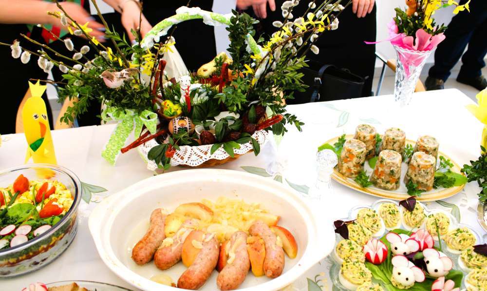 Koło Gospodyń Wiejskich w Wysokiej Wielkiej przygotowało: żurek wielkanocny, zrazy z jajkiem, roladki w galarecie, galarety, jajka pod różnymi postaciami, sałatki, przekąski, mazurka, baby i różne pyszne ciasta.