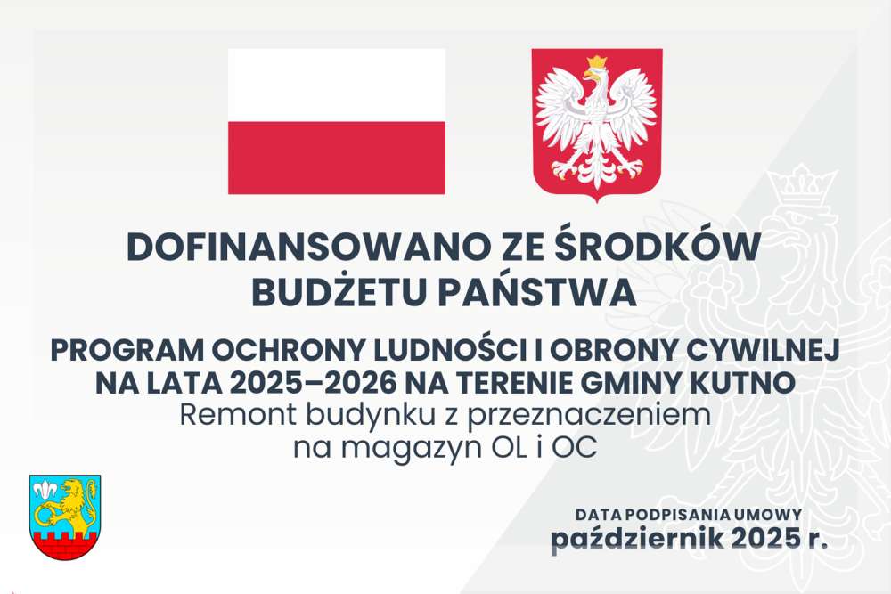 Realizacja inwestycji była możliwa dzięki dotacji celowej na realizację zadań ochrony ludności i obrony cywilnej w ramach Programu Ochrony Ludności i Obrony Cywilnej na lata 2025 – 2026.
