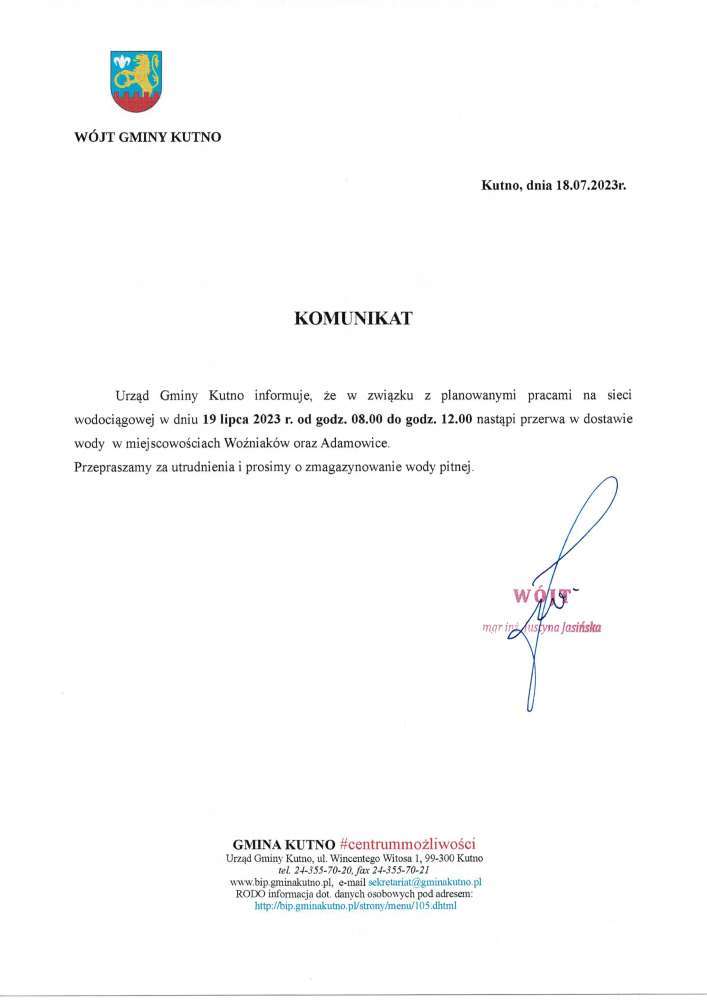 Poniżej treść komunikatu  dot. przerwy w dostawie wody.