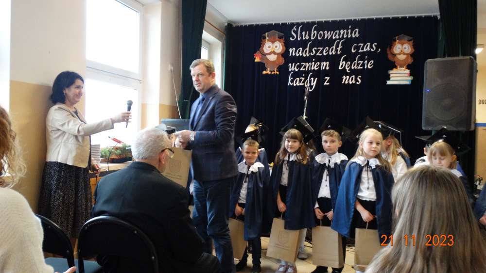 W wydarzeniu brał udział Dyrektor Centrum Usług Wspólnych Robert Witczak, który wręczył pierwszoklasistom upominki, od Wójt Gminy Kutno Justyny Jasińskiej i powitał dzieci w gronie społeczności szkolnej.