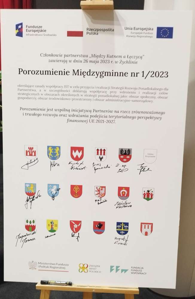 16 maja 2023 roku Rada Gminy Kutno podjęła uchwałę Nr LXIII/434/2023 w sprawie wyrażenia zgody na przystąpienie do Partnerstwa „Między Kutnem a Łęczycą". W związku z tym w dniu 26 maja w Żychlinie Wójt Gminy Kutno Justyna Jasińska w imieniu Samorządu Gminy Kutno w sposób symboliczny podpisała porozumienie określające zasady współpracy JST w celu przyjęcia i realizacji Strategii Rozwoju Ponadlokalnego dla Partnerstwa, w szczególności przy wdrożeniu i realizacji celów strategicznych w obszarach określonych w strategii ponadlokalnej jako: obszar społeczny, obszar gospodarczy, obszar środowiskowo – przestrzenny i obszar administracyjno – samorządowy.