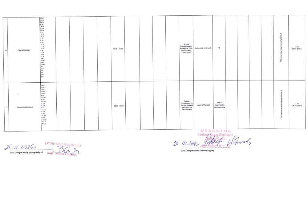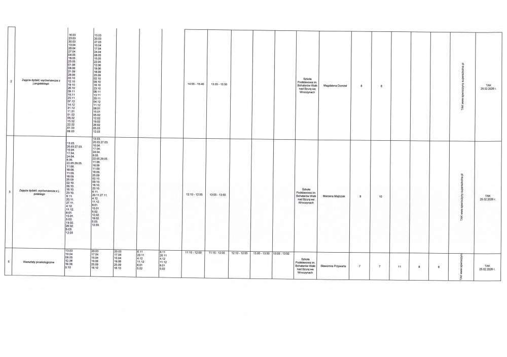 Szczegółowy harmonogram wsparcia dla szkoły podstawowej we Wroczynach