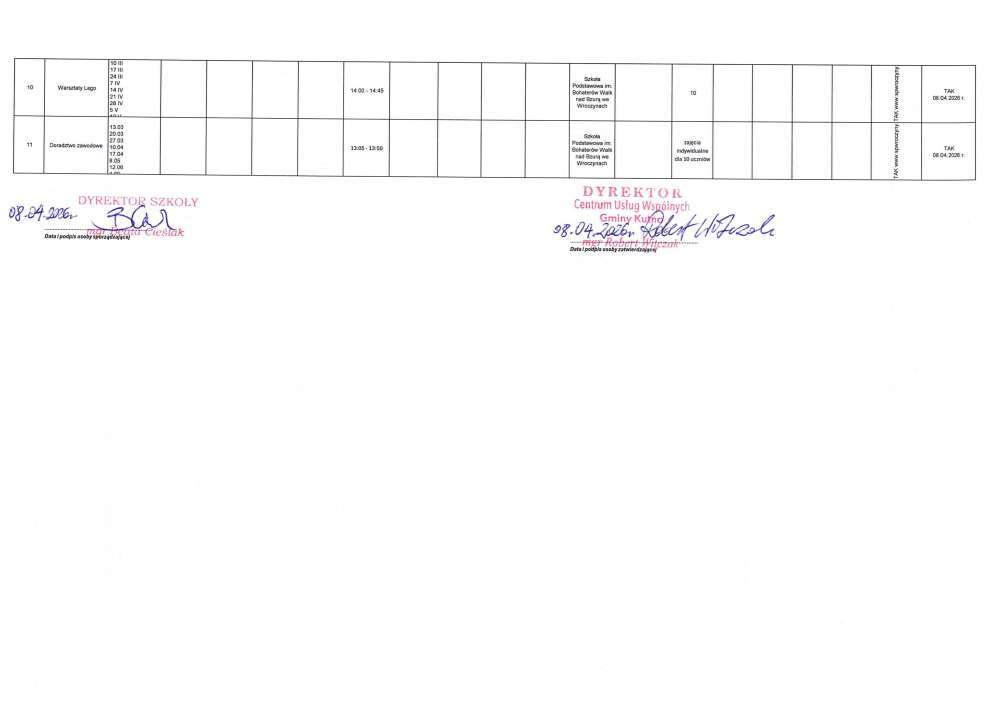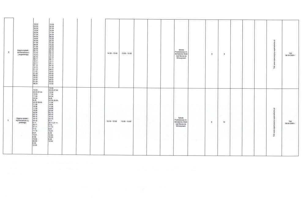 Szczegółowy harmonogram wsparcia dla szkoły we Wroczynach