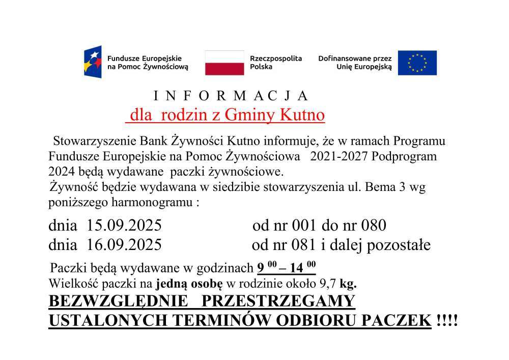 Informujemy o terminach wydawania paczek żywnościowych z Banku Żywności