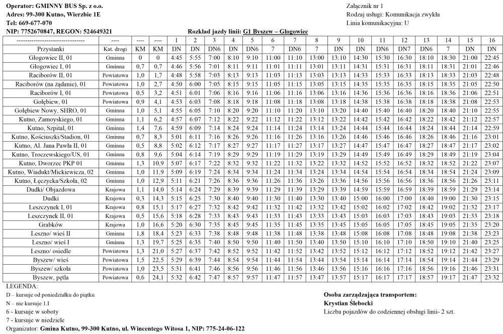 Poniżej rozkłady jazdy busów na w/w trasach.