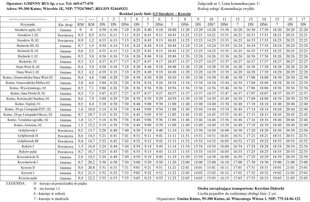 Dodatkowo zostaje wprowadzona linia G5 Kutno – Kuczków, przez miejscowości Podczachy, Wroczyny, Stanisławów, Franki Wroczyńskie, Marianki, Grabków, Leszczynek, Piwki, Sieciechów i Kuczków.