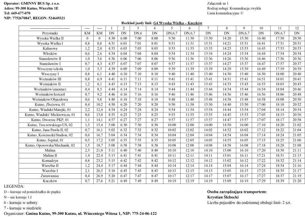 G4 Wysoka Wielka – Kuczków. Linia G4 zostaje wydłużona do miejscowości Kuczków przez Wierzbie
