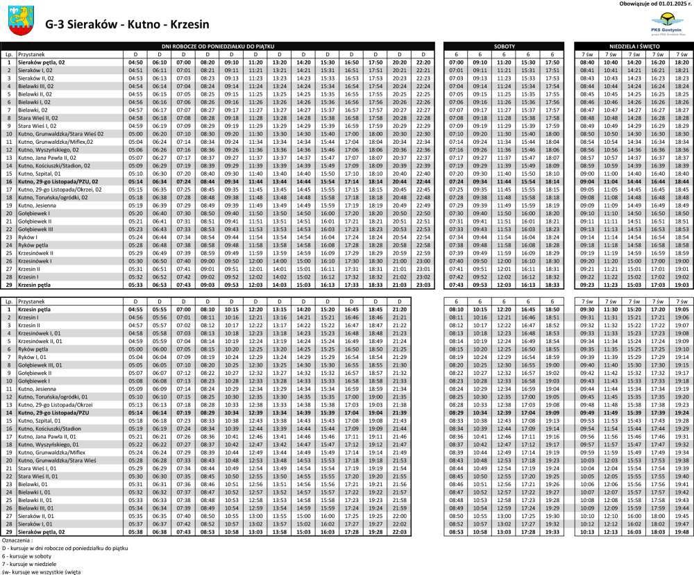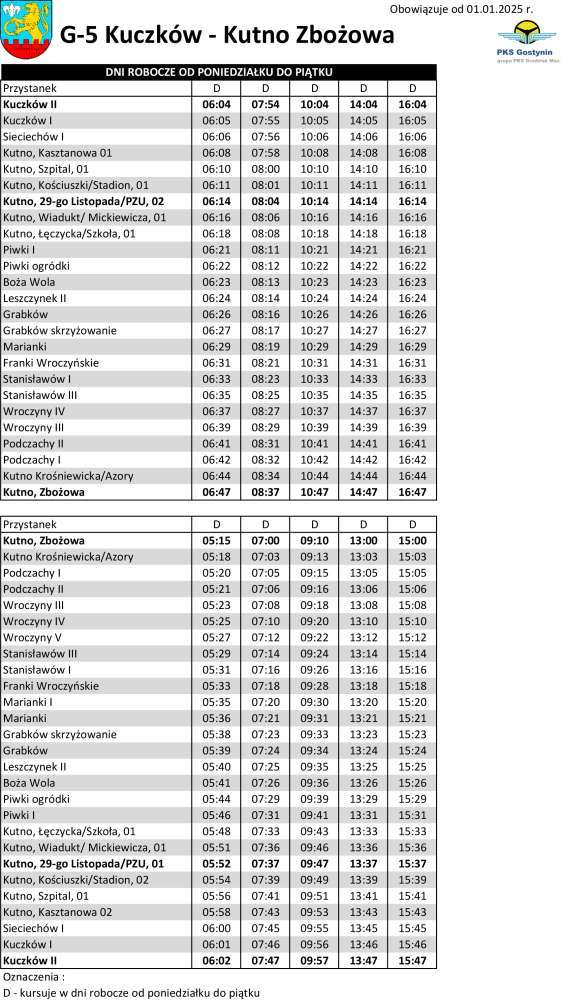 Informujemy, że od dnia 01 stycznia 2025 roku usługi w zakresie publicznego transportu zbiorowego na terenie Gminy Kutno świadczyć będzie firma PKS Gostynin Sp. z o.o.