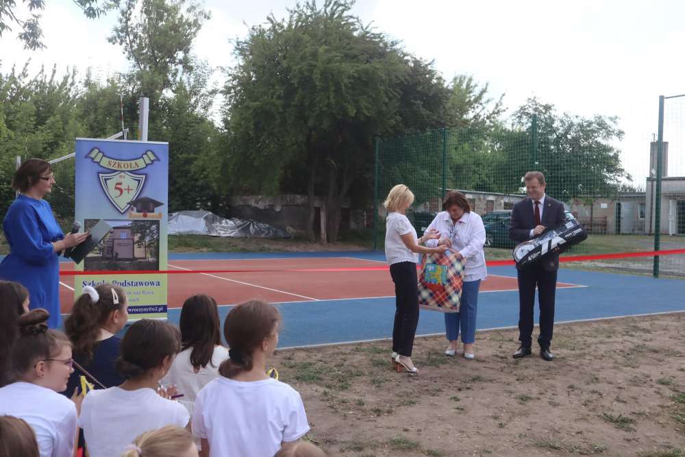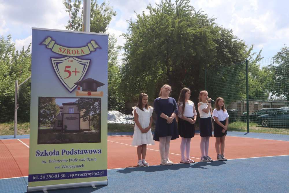 16 czerwca 2023 roku nastąpiła długo oczekiwana uroczysta inauguracja otwarcia boiska do siatkówki w Szkole Podstawowej we Wroczynach. Wszystkich zebranych powitała p. dyrektor szkoły Beata Cieślak, która w swoim krótkim przemówieniu wyraziła radość i satysfakcję z faktu, że uczniowie i mieszkańcy będą mogli korzystać z boiska. Ponadto w serdecznych słowach podziękowała za powstanie boiska.