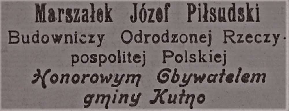 Szczególnie uroczyste obchody niepodległościowe miały miejsce w 1928 roku. Pod patronatem Józefa Piłsudskiego powołany został Główny Komitet Społeczny Trwałego Uczczenia 10. lecia Niepodległości. Postanowiono również uczcić osobę marszałka Józefa Piłsudskiego, nadając mu honorowe obywatelstwa. W tę ogólnopolską akcję włączyła się również Rada Gminy Kutno, która na nadzwyczajnym posiedzeniu w październiku 1928 roku nadała J. Piłsudskiemu tytuł pierwszego honorowego obywatela gminy.