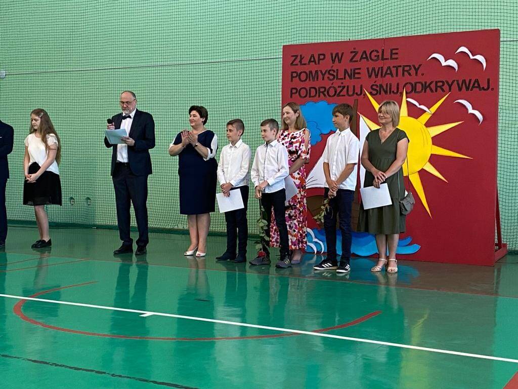 24 czerwca w szkołach podstawowych w Byszewie, Gołębiewku, Strzegocinie i Wroczynach odbyły się uroczystości z okazji zakończenia roku szkolnego 2021/2022. Na wydarzenia zostali zaproszeni Wójt Gminy Kutno Justyna Jasińska i zastępca dyrektora Centrum Usług Wspólnych Robert Witczak, którzy złożyli gratulacje i podziękowania Dyrektorom, nauczycielom i pozostałym pracownikom szkół oraz uczniom i ich rodzicom. Wręczono listy gratulacyjne rodzicom dzieci, które otrzymały stypendia za bardzo dobre wyniki w nauce. Dla ósmoklasistów przygotowane były upominki w postaci książek pochodzącego z Kutna Rafała Cichowskiego opatrzone autografem autora.