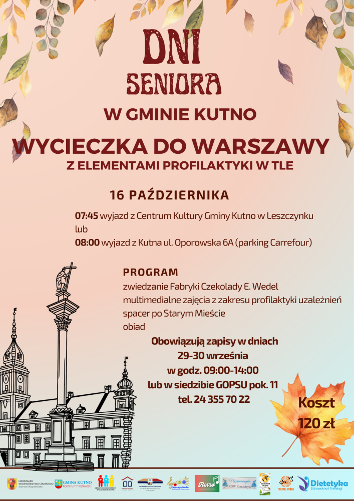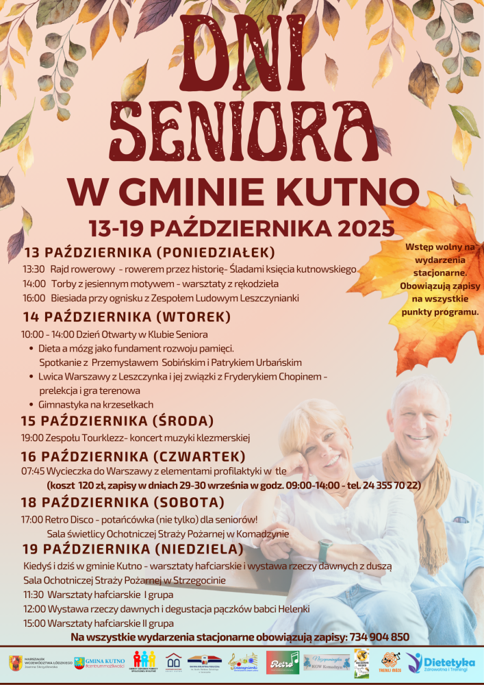 Zapraszamy na kolejne już Dni Seniora w Gminie Kutno, które odbędą się w dniach 13-19 października Wydarzenie organizowane jest wspólnie przez Gminę Kutno, Gminny Ośrodek Pomocy Społecznej, Gminną Bibliotekę Publiczną im. Józefa Bohdana Zaleskiego w Leszczynku i Centrum Kultury Gminy Kutno.
