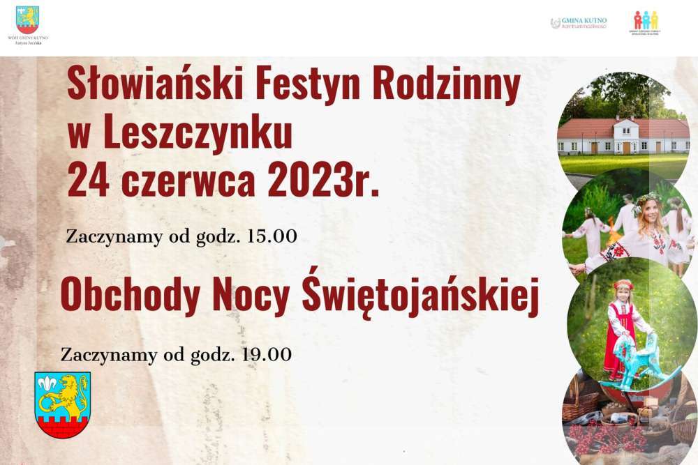 Już 24 czerwca 2023 roku zapraszamy do Centrum Kultury Gminy Kutno w Leszczynku na Słowiański Festyn Rodzinny. Wydarzenie organizowane jest przez Gminę Kutno we współpracy z Centrum Kultury Gminy Kutno, Gminną Biblioteką Publiczną im. Józefa Bohdana Zaleskiego, Gminnym Ośrodkiem Pomocy Społecznej, Komendą Powiatowa Policji w Kutnie, szkołami podstawowymi i Kołami Gospodyń Wiejskich z terenu gminy Kutno. Patronat honorowy nad festynem objęła Wójt Gminy Kutno Justyna Jasińska.