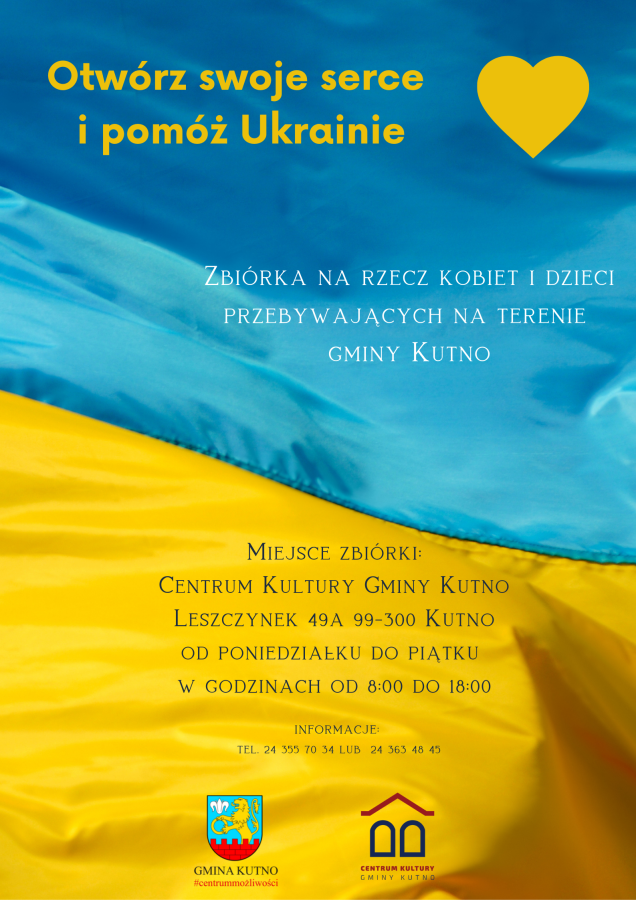 Dary można dostarczać do Centrum Kultury Gminy Kutno od poniedziałku do piątku w godzinach od 8:00 do 18:00.