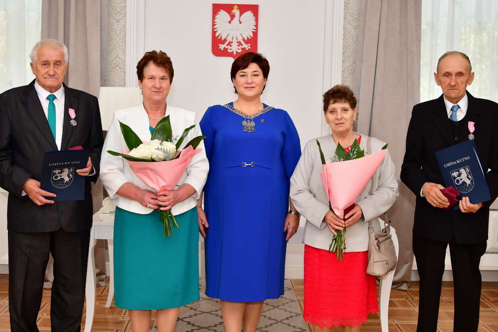 Cztery pary z gminy Kutno 29 października 2022 roku świętowały w Urzędzie Stanu Cywilnego piękny jubileusz „Złotych Godów", czyli 50. rocznicy zawarcia związku małżeńskiego. Wójt Gminy Kutno Justyna Jasińska wręczyła małżonkom listy gratulacyjne i medale Prezydenta Rzeczypospolitej Polskiej za Długoletnie Pożycie Małżeńskie.