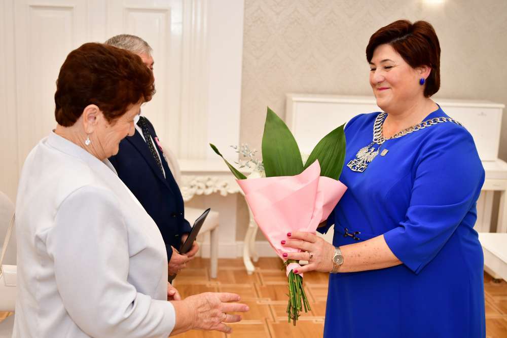 W tym ważnym dniu p.Wójt złożyła jubilatom serdeczne gratulacje, a także życzyła następnych wspólnie przeżytych lat w zdrowiu, szczęścia i każdej chwili spędzonej w ciepłym, rodzinnym gronie.