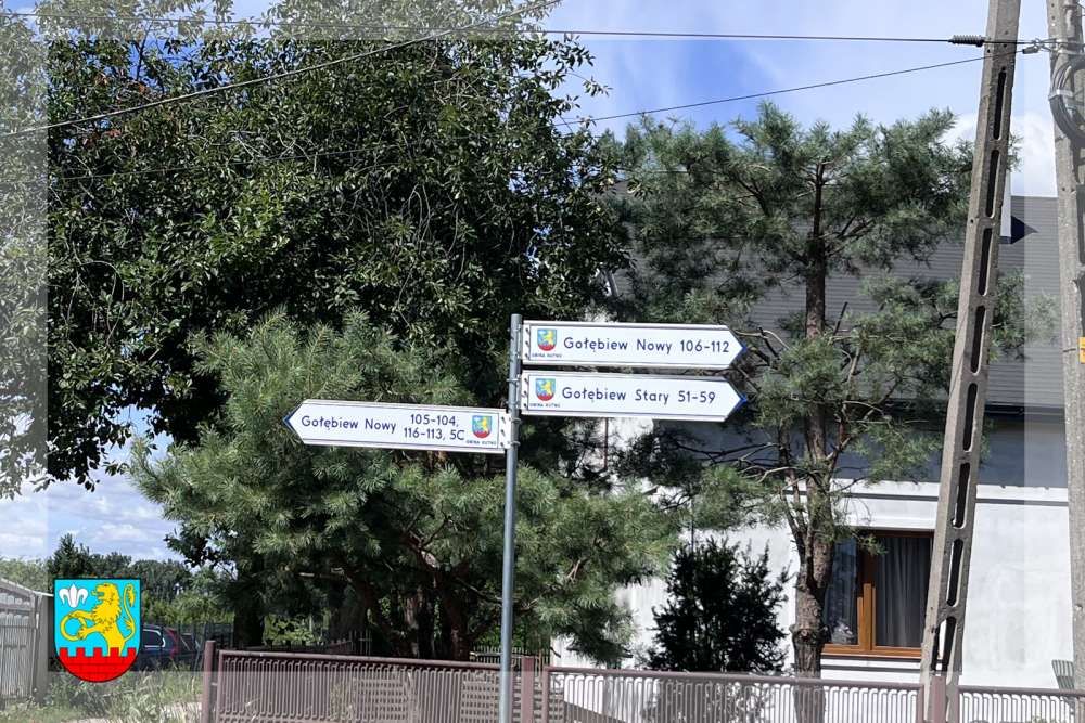 Znaki kierunkowe z nazwą miejscowości i numerami posesji pojawiły się już w następujących miejscowości Adamowice, Bielawki, Gnojno, Gołębiew Nowy, Gołębiew Stary, Komadzyn, Krzesinówek, Kuczków, Leszno, Malina, Marianki, Nowa Wieś, Podczachy, Raciborów, Sieciechów, Siemiennik, Sieraków, Stara Wieś, Wierzbie, Woźniaków.