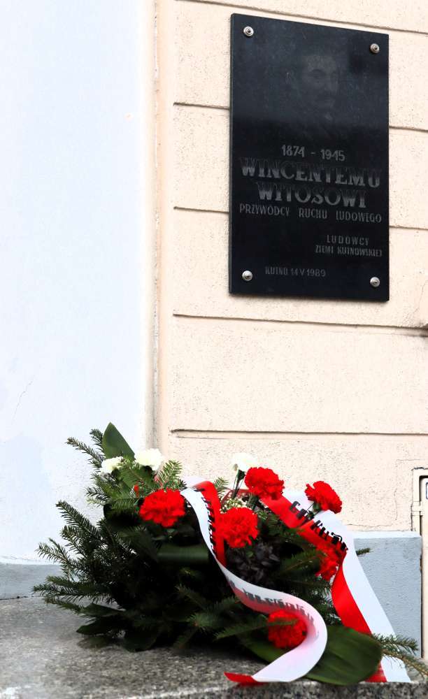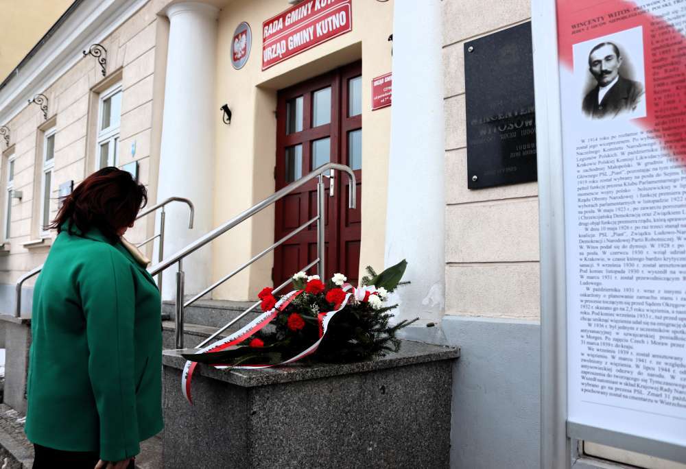 W dniu 19 stycznia 2024 roku Wójt Gminy Kutno Justyna Jasińska wraz z Sekretarzem Gminy Kutno Jackiem Saramonowiczem i Kierownik Referatu Organizacyjnego Jolantą Mikołajczyk złożyli wiązankę kwiatów pod tablicą pamiątkową Wincentego Witosa umieszczoną na budynku Urzędu Gminy Kutno przy ul. Witosa 1.