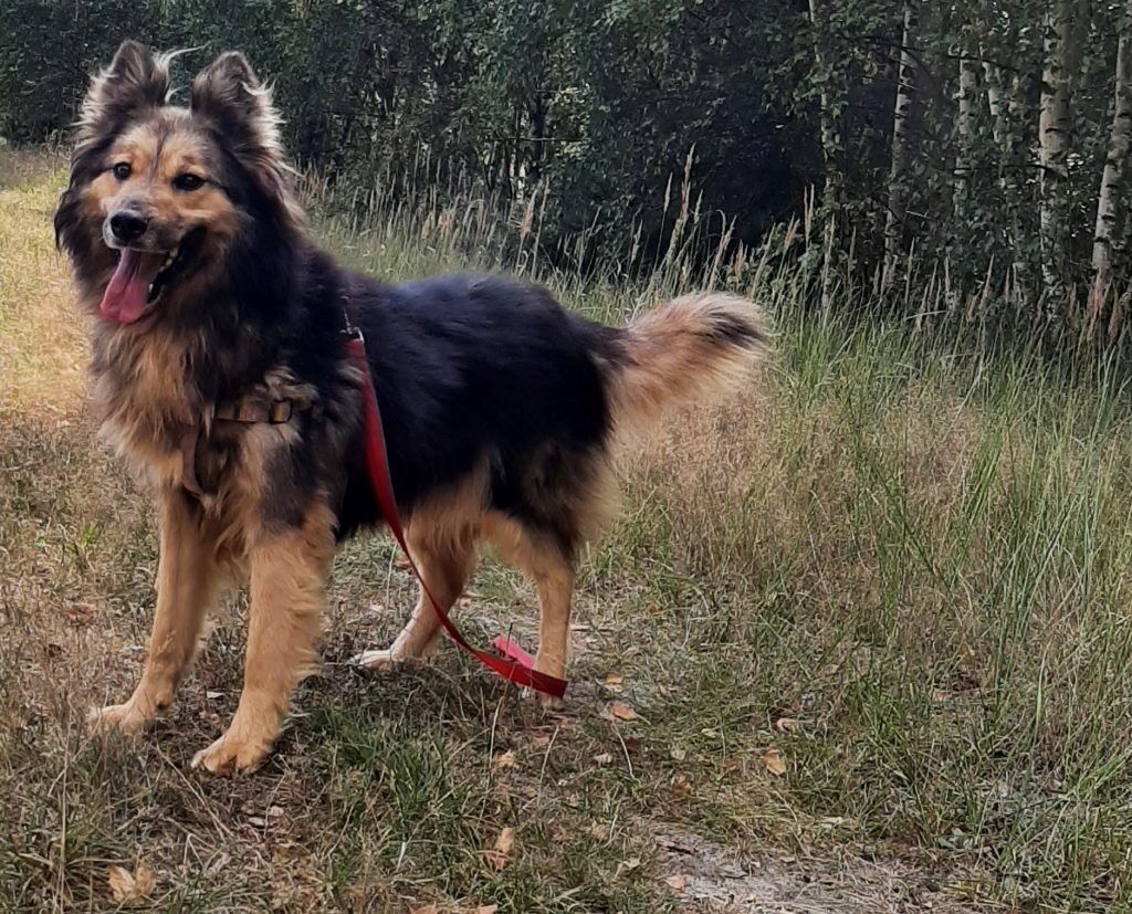 Duży, wesoły psiak w typie owczarka. Chłopiec żywiołowy, wesoły, bardzo pozytywnie nastawiony do ludzi. Potrafi chodzić na smyczy, akceptuje inne psiaki. Będzie wspaniałym towarzyszem dla aktywnej osoby, lubiącej spędzać czas ze swoim podopiecznym.