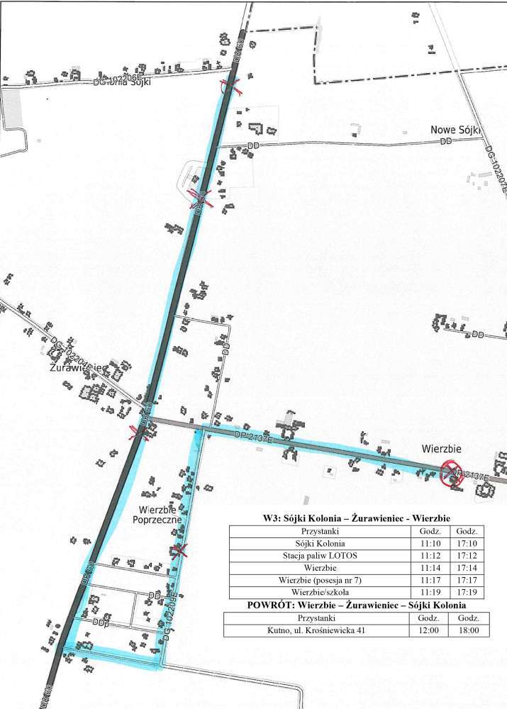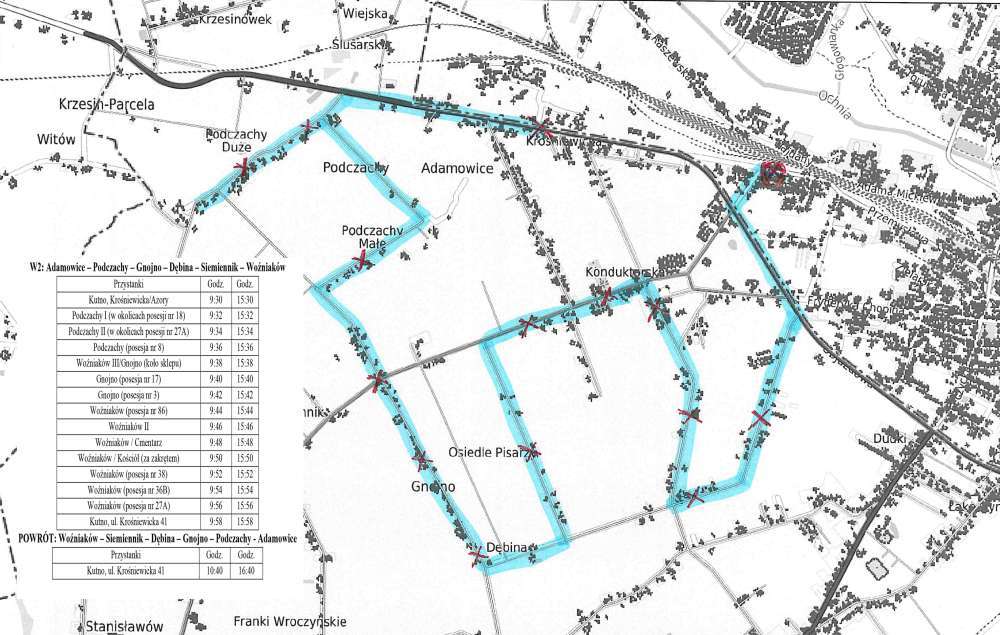 Poniżej udostępniamy przebieg dodatkowych tras linii obsługujących wybory 2023 oraz rozkład jazdy dla poszczególnych linii tj. W1, W2, W3.