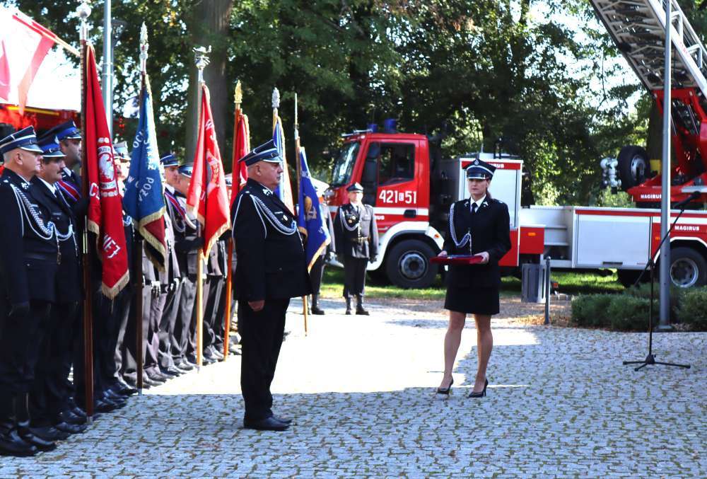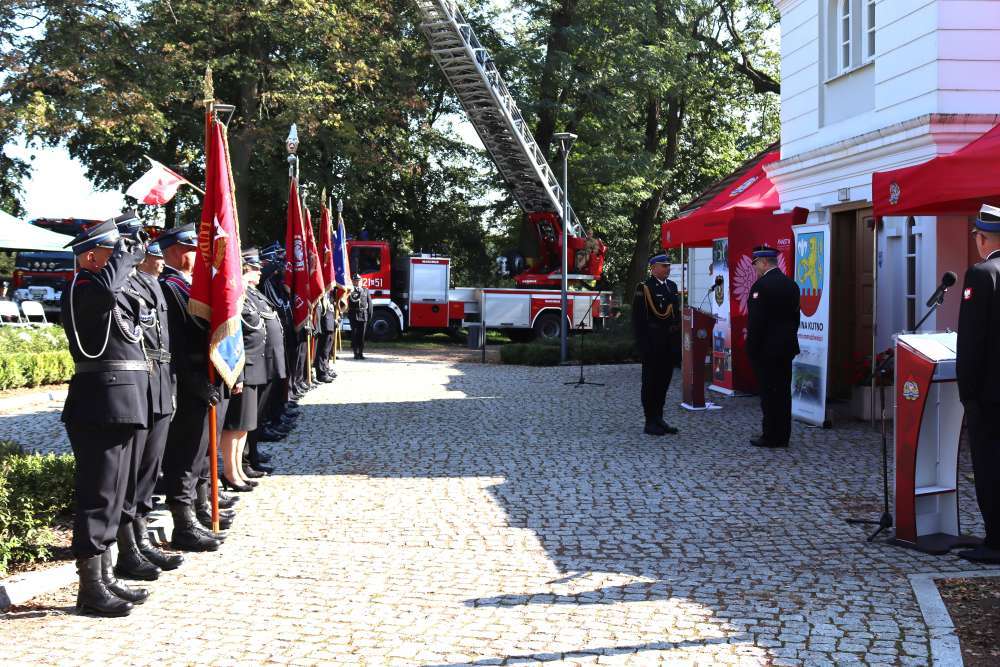 Uroczystość rozpoczęła się od złożenia meldunku przez dowódcę uroczystości na ręce Zastępcy Łódzkiego Komendanta Wojewódzkiego PSP i podniesieniem flagi państwowej.