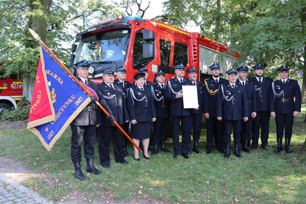 Ceremonia z okazji oficjalnego włączenia Ochotniczej Straży Pożarnej w Leszczynku do Krajowego Systemu Ratowniczo-Gaśniczego