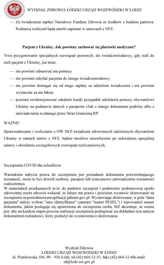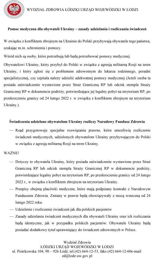 Ponadto informujemy o możliwości uzyskania pomocy medycznej.