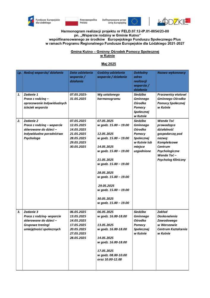 Harmonogram realizacji projektu „Wsparcie rodziny w Gminie Kutno”
