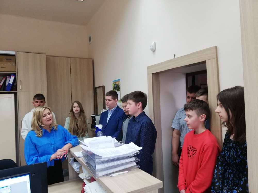Po zakończeniu sesji, radni MRGK odbyli wizytę w Urzędzie Gminy Kutno i zapoznali się z pracownikami poszczególnych komórek organizacyjnych Urzędu. Przewodnikiem po urzędzie była Wójt Gminy Kutno Justyna Jasińska.
