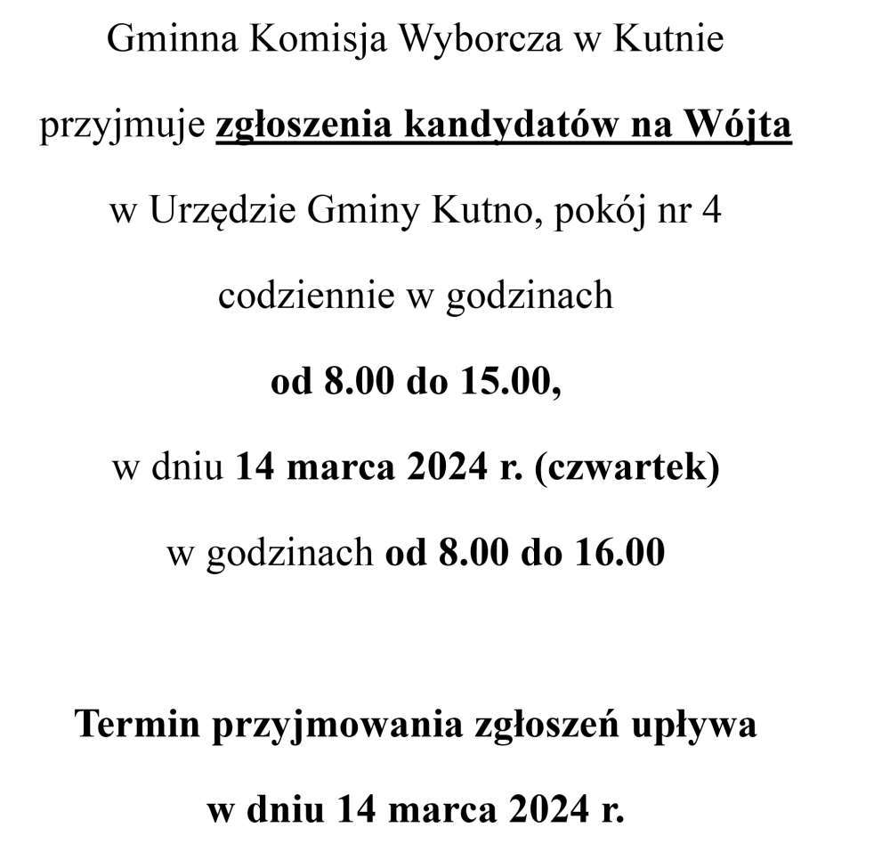 Informujemy o terminach zgłaszania kandydatów na Wójta.
