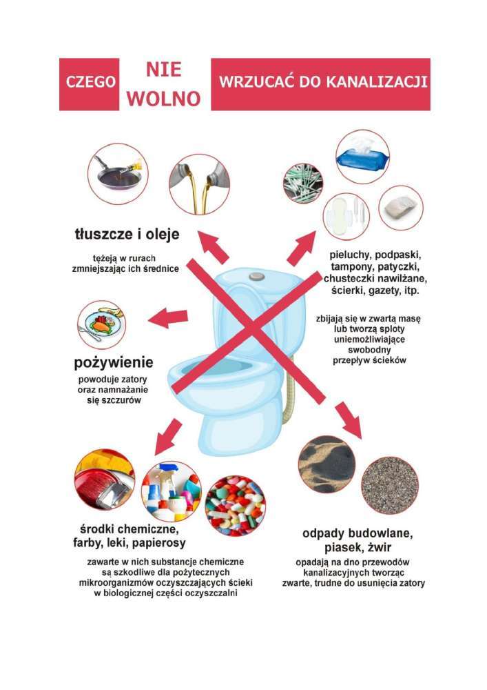 Poniżej treść komunikatu Wójt Gminy Kutno Justyny Jasińskiej dot. niewrzucania odpadów do kanalizacji.