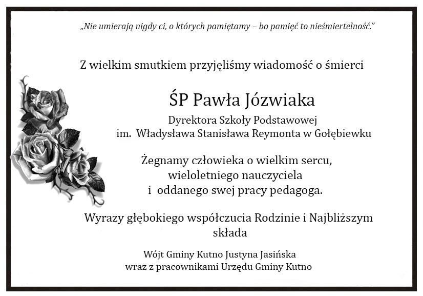 Kondolencje od Wójt Gminy Kutno i pracowników Urzędu Gminy Kutno