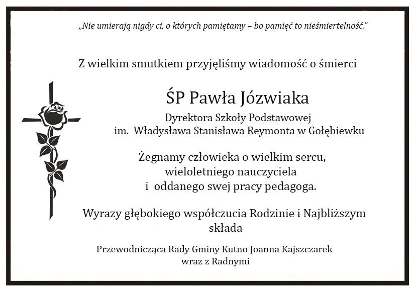 Kondolencje od Przewodniczącej Rady Gminy Kutno Joanny Kajszczarek i Radnych
