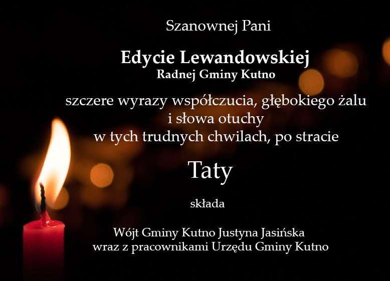 Kondolencje dla Pani Edyty Lewandowskiej od Wójt Gminy Kutno i pracowników Urzędu Gminy Kutno.