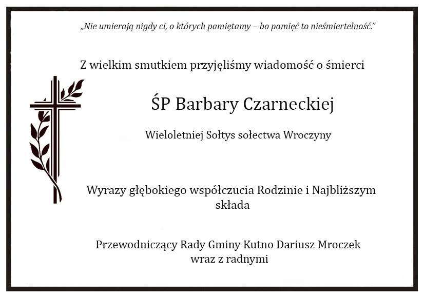 Kondolencje dla najbliższych ŚP Barbary Czarneckiej od Przewodniczącego Rady Gminy Kutno.